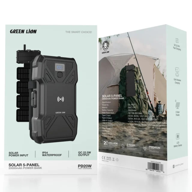 پاوربانک 5 پنل سولار 20000mAh گرین لاین مدل GL-PX27، یک دستگاه شارژ قابل حمل و با ویژگی های پیشرفته است که بهویژه برای کسانی که به سفرهای خارج از منزل یا فعالیت های بیرون از خانه میپردازند، طراحی شده است. این محصول با ظرفیت 20000mAh به شما امکان میدهد تا دستگاههای الکترونیکی خود را در طول سفر یا در شرایطی که دسترسی به برق محدود است، شارژ کنید. ویژگی منحصر بهفرد این پاوربانک، پنل های خورشیدی پنجگانه آن است که اجازه میدهند از نور خورشید برای شارژ مجدد پاوربانک استفاده کنید، بهویژه در مکان هایی که دسترسی به برق شهری وجود ندارد.