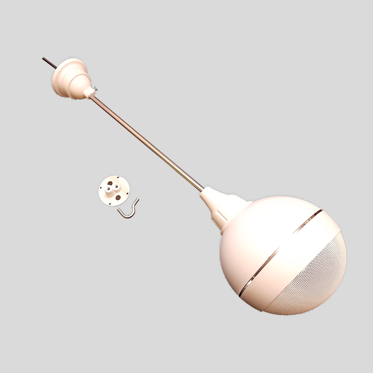 ✔ نقاط قوت: ✅ پخش صدای یکنواخت: طراحی کروی و آویز بودن آن باعث میشود صدا در تمام نقاط فضا بهطور یکسان پخش شود.